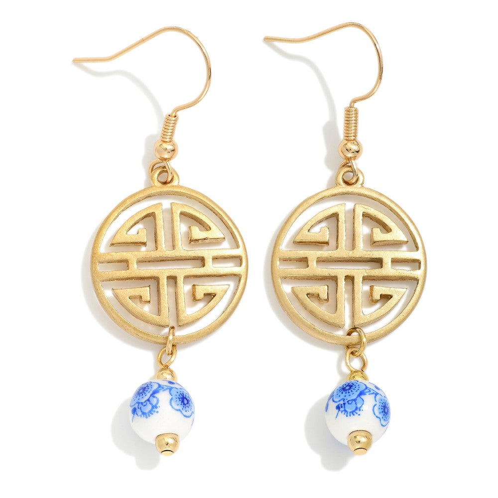 Gold Medallion Chinoiserie Bead Earrings