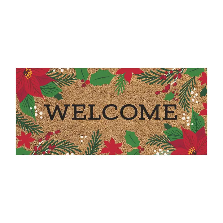 Create an inviting atmosphere for friends and family with this Coir Flocked Sassafras Switch Mat. It features beautiful blooming poinsettias with leaf and berry accents. Provide the ultimate style and functionality to your doorstep with Evergreen’s flocked door mats. The unique flocking technique of these mats offers a durable texture that is ideal for scraping off dirt and mud. Its embossed surface channels moisture from entering homes, leaving spaces clean. With a recycled crumb rubber base, our flocked mats are non-slip and perfect for outdoor exposure.