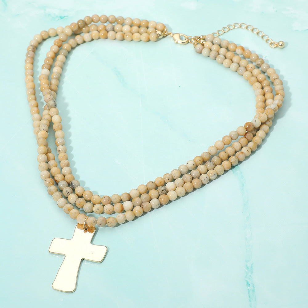 • Elevate your look with this beaded multi-strand necklace featuring a bold cross pendant. Designed with layered beadwork for a unique touch, this necklace blends classic faith-inspired style with modern fashion, making it a meaningful and versatile accessory for everyday wear or special occasions.