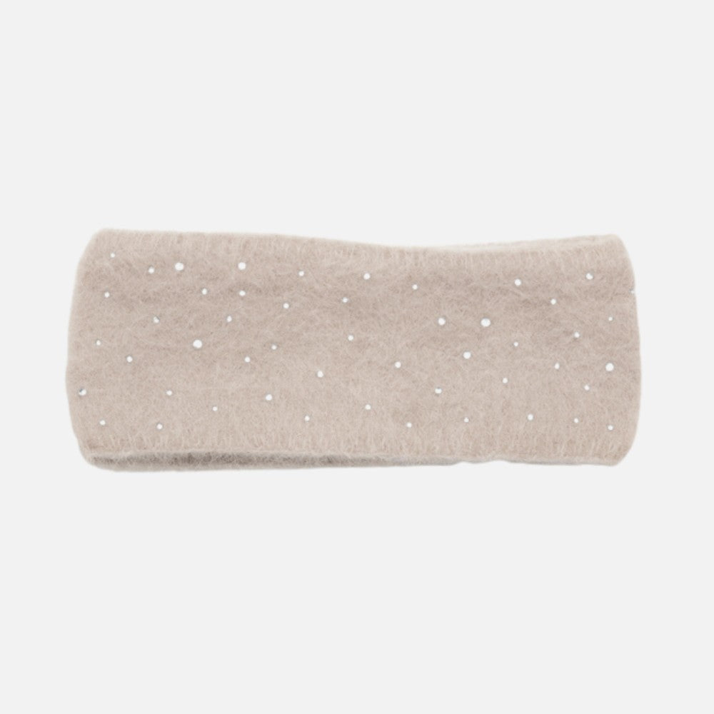 Beige Fuzzy Knit Headwrap w/ Rhinestones