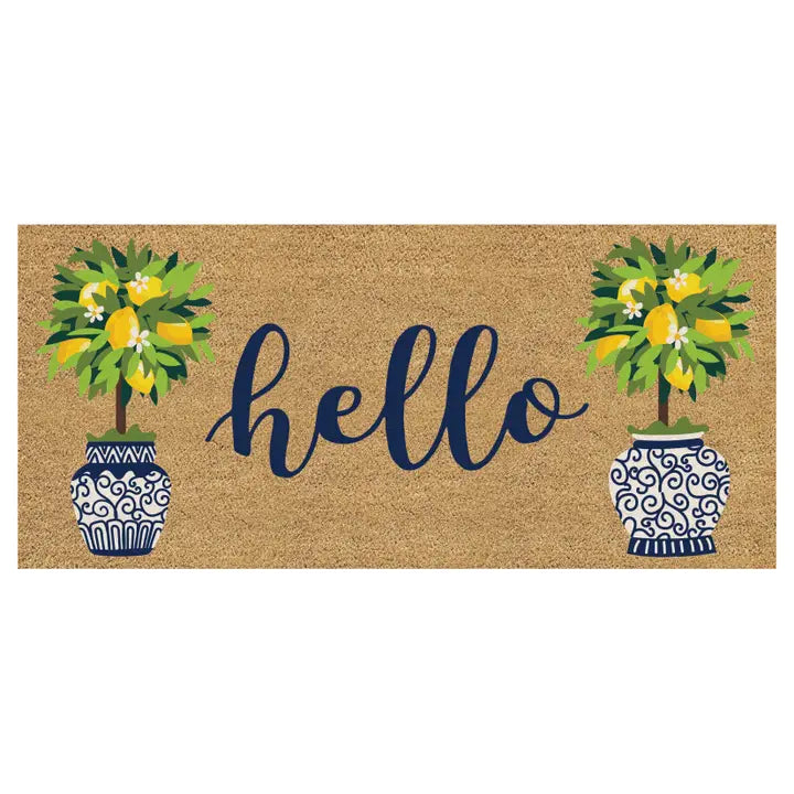 Offer guests a warm welcome this summer with this coir mat. Perfect for adding a bit of whimsy to any entryway, this welcoming design features stunning bright colors. Crafted from coco husk fiber, the eye-catching mat is natural and eco-friendly. Ideal for high-traffic areas, the mat traps dirt and debris to prevent messes from being tracked into homes. Designs are printed directly on the mats with fade-resistant dyes. Since the mat is crafted from natural coir, some shedding is to be expected. Shake off excess fibers or use a soft brush to gently sweep.